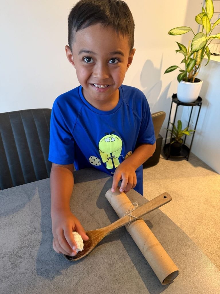 I made this paper shooting catapult, I followed the instructions on the video and used a finished paper towel roll, my moms cooking spoon and some string. I used scrunched up balls of paper towel as amo for lainching. It was fun. I have included a video below.